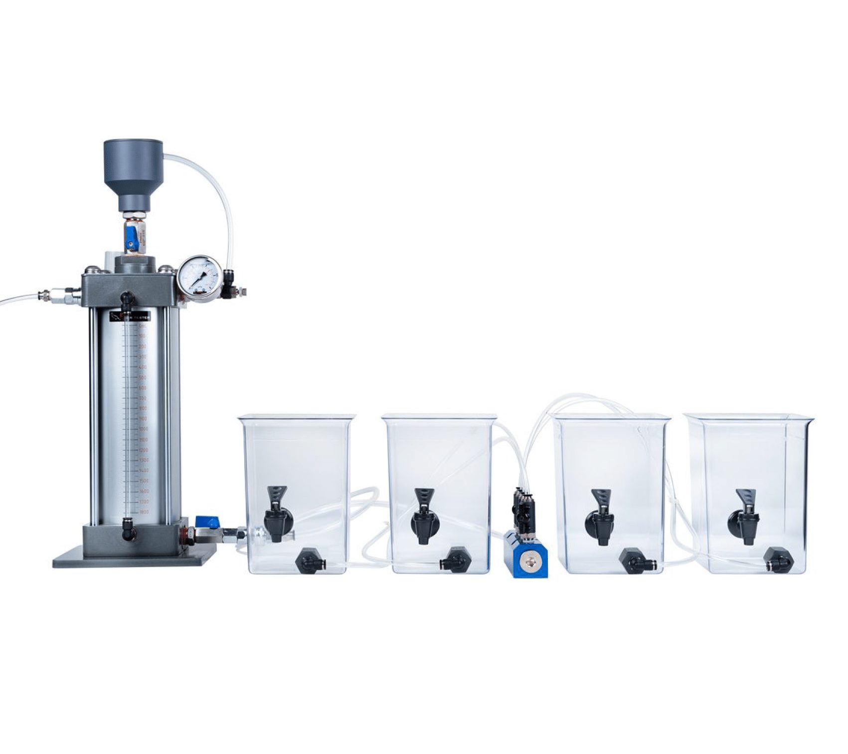 The Platypus Dissolved Air Flotation (DAF) Jar Tester Saturator Assembly provides a pilot-scale platform for evaluating DAF as a clarification solution for challenging water conditions. The system allows detailed testing of DAF performance parameters including float quality, coagulant demand, and recycle saturation efficiency — all crucial for optimizing full-scale plant design and operations.